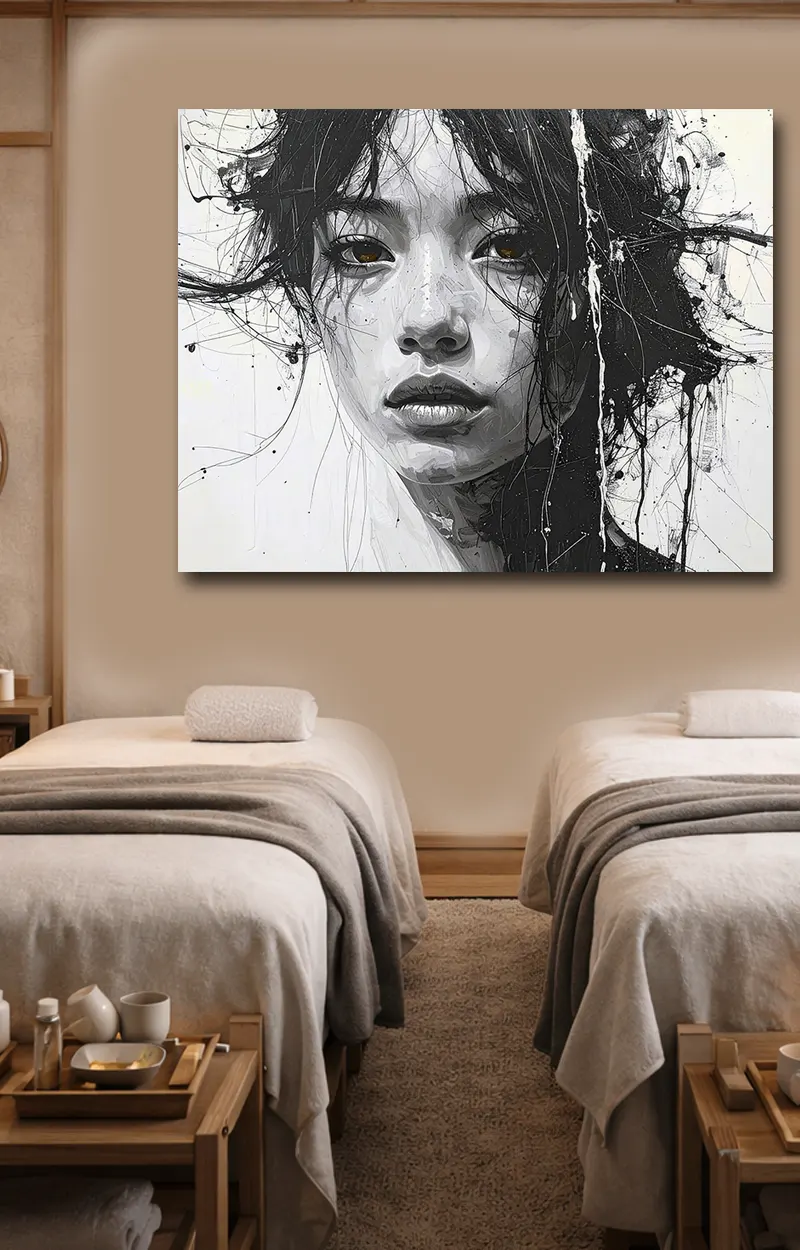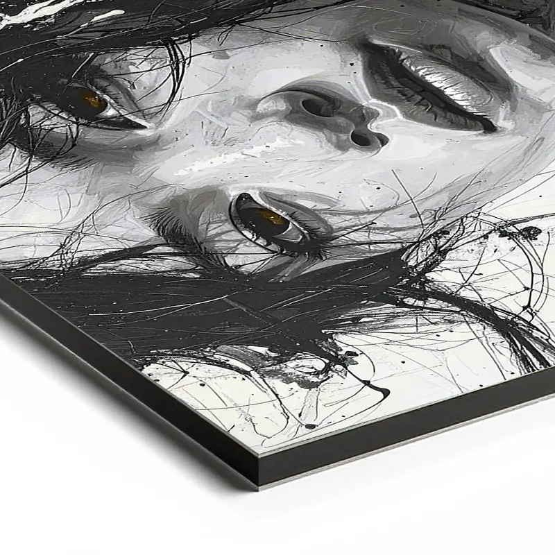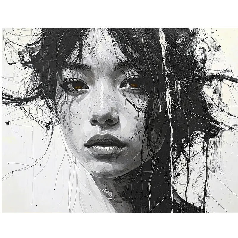 Les contrastes puissants entre le noir profond et le blanc lumineux créent une intensité visuelle unique. Chaque trait semble spontané, comme peint à l’encre, apportant un effet artistique authentique.